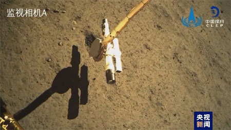 此前,嫦娥六号顺利完成在月球背面南极-艾特肯盆地的智能快速采样,并按预定形式将珍贵的月球背面样品封装存放在上升器携带的贮存装置中。表取完成后,嫦娥六号着陆器携带的五星红旗在月球背面成功展开。这是中国首次在月球背面独立动态展示国旗。